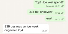 per week uit ads. Een ROAS tussen de 8 en 20 al die maanden (!).