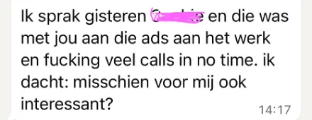 En niet alleen bij mij, maar ook bij de testcases bij klanten die we draaiden. Want wij hebben zelf al best wel wat budget wat we inzetten (1000 tot 4000 per maand), maar ik heb het ook getest met klanten die voor 10 euro per dag adverteren voor een korte periode (ze zetten de ads ‘aan’ voor bijvoorbeeld 2 weken als ze weer calls in willen plannen) — en alles daar tussenin. Dit werkt. Klanten die zich richten op ondernemers, klanten die zich richten op particulieren.
